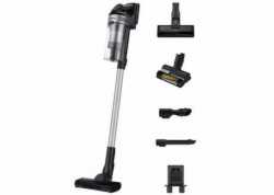 Tyčový vysavač Samsung Jet 65 Pet 2v1 s cyklónovou filtrací, digitálním invertorovým motorem a sacím výkonem až 150 W. Výdrž až 40 min., prachová nádoba 0,8 l, nástavec Pet Tool na zvířecí chlupy, Jet Fit Brush na koberce, hmotnost 2,3 kg.