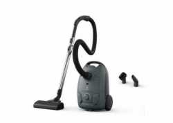 Sáčkový vysavač Electrolux 500 Clean s příkonem 750 W, HEPA filtrací a objemem sáčku 3 l. Akční rádius 8,5 m, hlučnost 78 dB, teleskopická trubice, automatické navíjení kabelu, omyvatelný filtr a příslušenství pro detailní úklid.