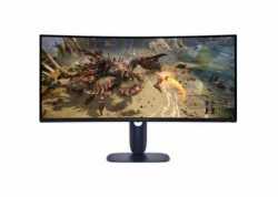 34" prohnutý herní monitor Dell Alienware AW3425DWM s VA panelem, rozlišením 3440 × 1440, obnovovací frekvencí 180 Hz a odezvou 1 ms. DisplayHDR 400, FreeSync Premium, HDMI 2.1, DisplayPort, USB, VESA, výškové nastavení. Kontrast 3000:1, jas 400 cd/m².
