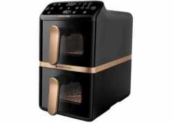 Horkovzdušná fritéza Onemoon D8 Double Basket s 8 programy, dvěma zásuvkami a velkým objemem 8 l. Frituje a griluje v obou zásuvkách nezávisle na sobě.