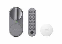 Chytrý zámek Lockin G30 s WiFi 2,4 GHz a Bluetooth, čtečkou otisků prstů a podporou Android/iOS. Napájení 4× AA baterie (součást balení), kompatibilní s Google Assistant a Amazon Alexa, rozměry 62 × 100 × 57 mm.