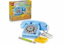 LEGO® Creator 3 v 1 31174 Retro telefon – 383 dílků, pro děti od 8 let, řada LEGO® Creator. Téma mechanika, rok uvedení 2025. Model o rozměrech cca 15 × 11 × 7 cm. Stavebnice 3 v 1 bez potřeby baterií, plastové provedení. UPOZORNĚNÍ: Nebezpečí zalknutí. Malé části.