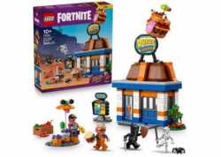 LEGO® Fortnite 77076 Restaurace Durrr Burger s 546 dílky pro děti od 10 let. Stavebnice inspirovaná hrou Fortnite, obsahuje několik minifigurek, interaktivní detaily restaurace a podporu aplikace LEGO Builder s 3D návody. Šířka modelu cca 26 cm. UPOZORNĚNÍ: Nebezpečí zalknutí. Malé části.