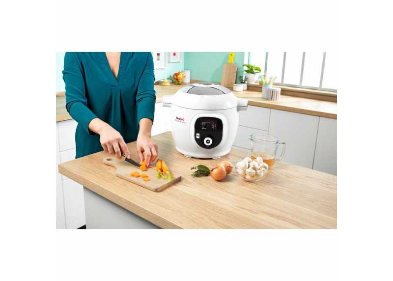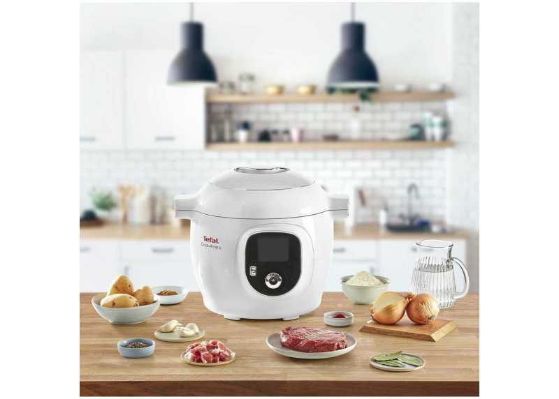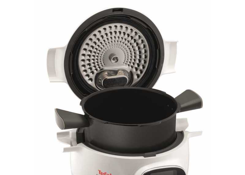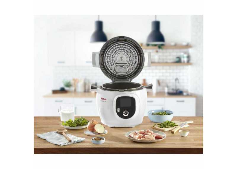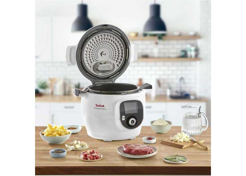 Multifunkční hrnec Tefal Cook4Me v bílé barvě přináší rychlé a pohodlné vaření díky výkonu 1 600 W a objemu 6 litrů. Kombinuje tlakové vaření, vaření v páře, pečení i smažení v jednom spotřebiči. Disponuje automatickými programy, displejem, časovačem, funkcí odloženého startu i udržením teploty. Vyjímatelná nádoba usnadňuje údržbu a napařovák rozšiřuje možnosti přípravy zdravých pokrmů.