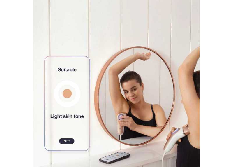 Epilátor s technologií IPL záblesků efektivně odstraňuje chloupky a viditelně snižuje jejich počet až na 2 roky. První výsledky můžete vidět už po prvním ošetření. Epilátor se páruje k mobilní aplikaci, díky čemuž získáte efektivní nástroj, jehož ovládání je velmi snadné. Aplikace vás provede prvními krůčky, zhodnotí kompatibilitu vaší pokožky a pomůže vám naplánovat a dodržet příští péči. Senzor v epilátoru snímá odstín pokožky a stará se, aby ostranění chloupků bylo pro pokožku bezpečné a účinné. Epilátor je vhodný i pro intimní a citlivé oblasti a pánskou epilaci.