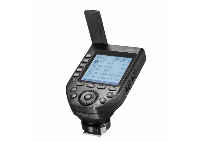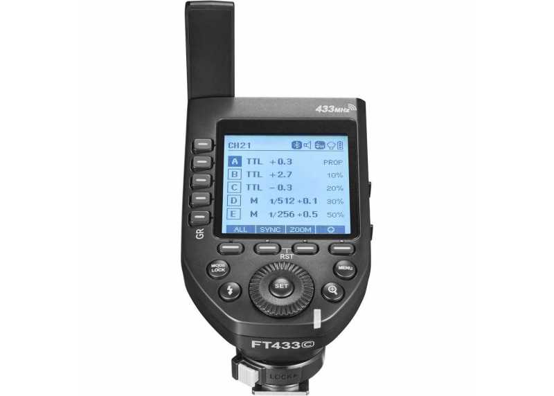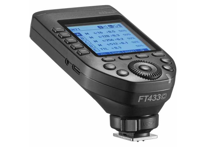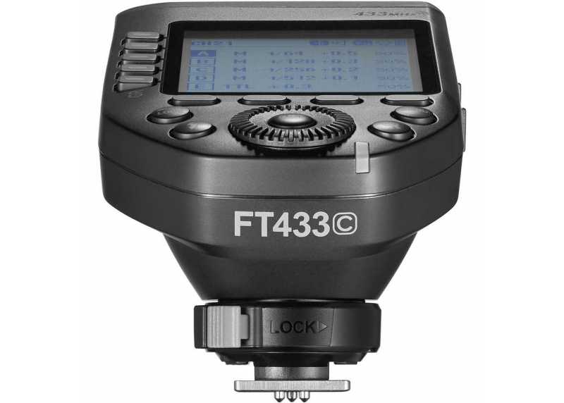 Bezdrátový vysílač Godox FT433 Pro C pro Canon s podporou TTL a HSS, frekvence 433 MHz, přehledný LCD displej, přesné ovládání výkonu blesku, rychlá synchronizace, intuitivní ovládání, kompatibilita s Godox systémem, ideální pro profesionální fotografii ve studiu i terénu.