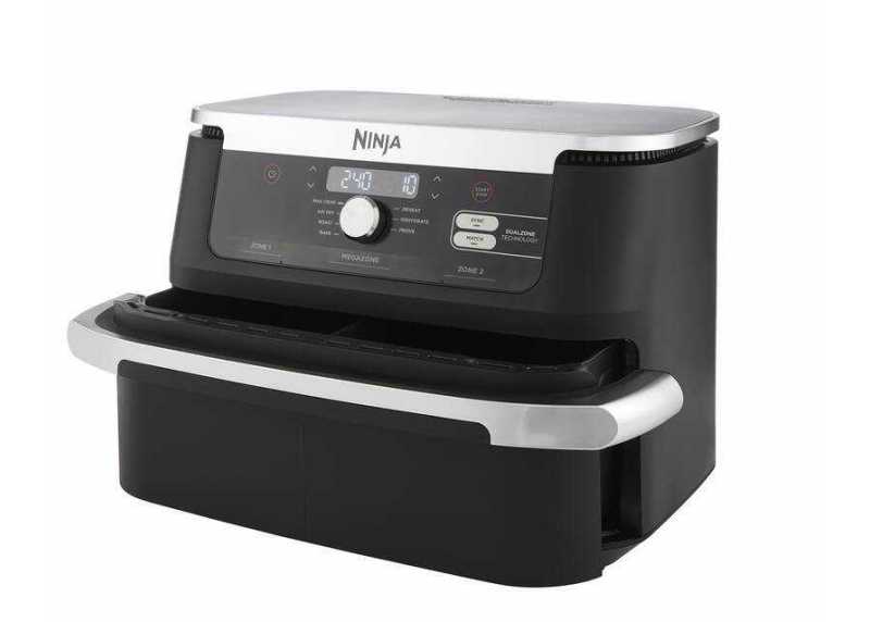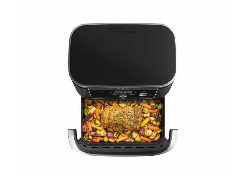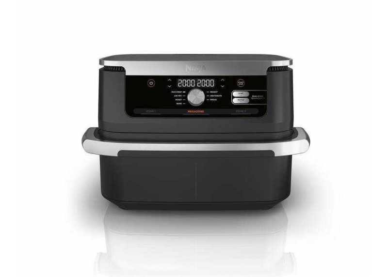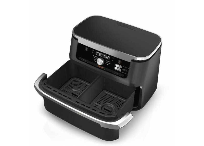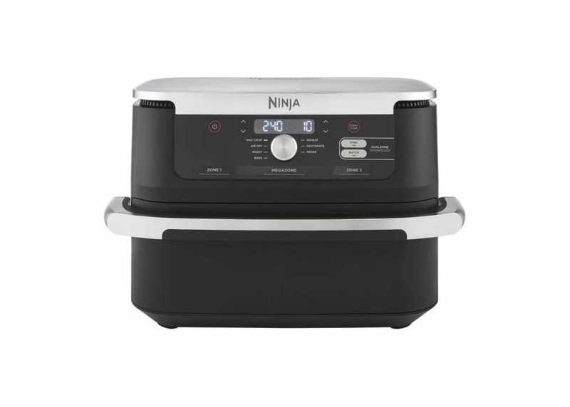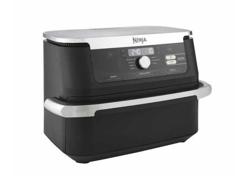 Horkovzdušná fritéza Ninja Foodi FlexDrawer AF500EU v elegantním černo-stříbrném provedení je ideálním pomocníkem pro rychlou a zdravou přípravu jídla. Díky inovativnímu systému FlexDrawer můžete využívat dvě nezávislé varné zóny o objemu 5,2 l každá, nebo vyjmout přepážku a vytvořit jednu velkou MegaZone o objemu 10,4 l pro přípravu větších pokrmů. Technologie Dual Zone umožňuje současné vaření dvou jídel s různými funkcemi, teplotami a časy – obě dokončí přípravu současně díky funkci SYNC. Fritéza nabízí 7 funkcí vaření (Air Fry, Max Crisp, pečení, grilování, ohřev, sušení a kynutí) s teplotním rozsahem 40–240 °C. Připravujte pokrmy až o 75 % méně tuku než při tradičním smažení a až o 65 % rychleji než v klasické troubě. Všechny odnímatelné části mají nepřilnavý povrch a jsou vhodné do myčky nádobí.