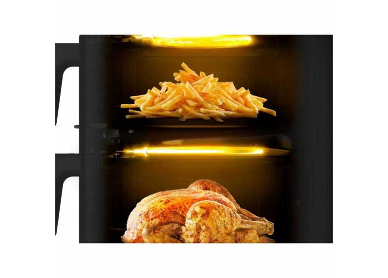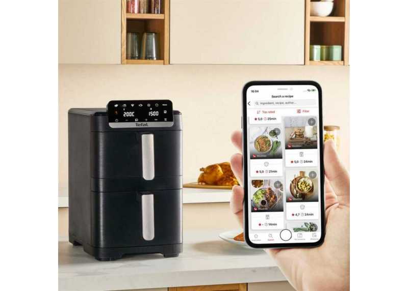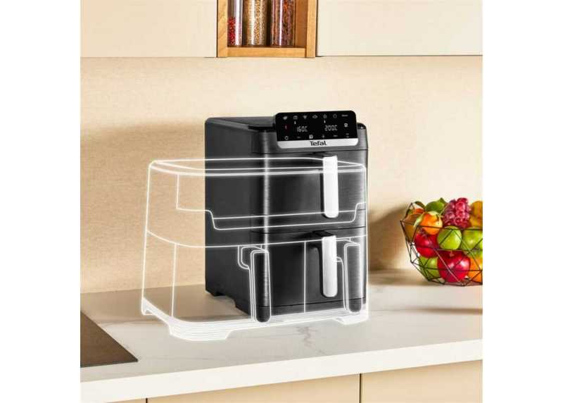 Tefal Easy Fry Crispy Stack přináší efektivní a prostorově úsporné řešení pro moderní kuchyni. Díky dvěma samostatným košům, vysokému výkonu a chytrým funkcím umožňuje připravit kompletní menu najednou – rychle, rovnoměrně a s minimem tuku.