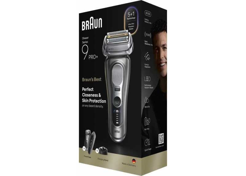 Holicí strojek Braun Series 9 PRO+ nabízí novou úroveň elektrického holení s důrazem na hladkost, pohodlí a přesnost. Díky pěti synchronizovaným holicím prvkům účinně zvládá i delší a obtížné vousy, a to při každé délce strniště. ProTrimmer s břity z chirurgické oceli zajistí precizní zastřihování i v těžko dostupných místech. Vyrobený v Německu, tento strojek je vodotěsný, nabízí 60 minut provozu díky lithium-iontové baterii a je vhodný jak pro mokré, tak suché holení, což zajišťuje dlouhou životnost a každodenní spolehlivost.