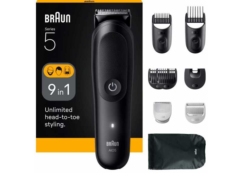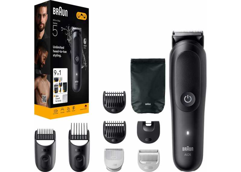 Braun Series 5 AIO5540 All in One AIOS 9v1 je univerzální zastřihovač, který zvládne až 9 různých úkolů — od vousů, přes tvarování kontur až po úpravu vlasů i celého těla. Díky výměnným nástavcům upravíte délku střihu přesně podle potřeby. Výkonný motor zvládá i husté a silné vousy. Ergonomický design a snadné ovládání zaručují pohodlné použití. Voděodolné provedení umožňuje použití ve sprše i snadné opláchnutí pod tekoucí vodou. Dlouhá výdrž baterie vám poskytne dostatek energie pro několik týdnů úprav bez nabíjení. Zastřihovač je ideální jak na každodenní úpravu vousů, tak pro komplexní péči o vzhled.