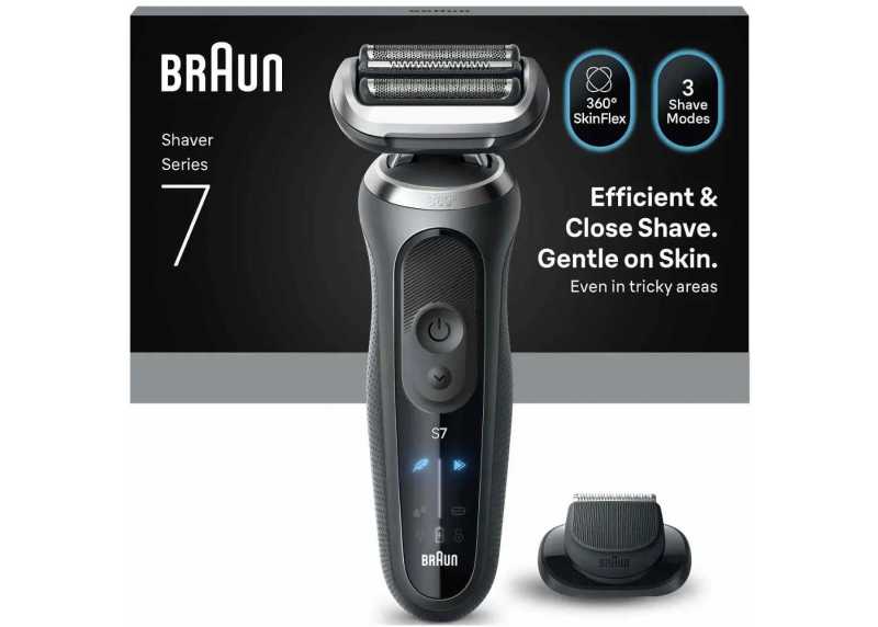Braun Series 7 72-G1200s nabízí kombinaci vysokého výkonu, komfortu a šetrnosti k pokožce. Díky flexibilní hlavě 360° SkinFlex, 3 břitům Flex a možnosti mokrého i suchého holení poskytuje dokonale hladký výsledek každý den.