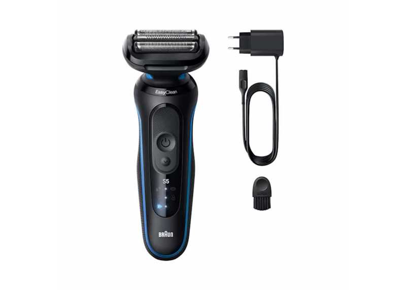 Bezdrátový holicí strojek na vlasy a vousy Braun Series 5 Wet&Dry 52-B1000s. Použití na vousy, 2 režimy holení, 3 břity, výdrž 60 minut.