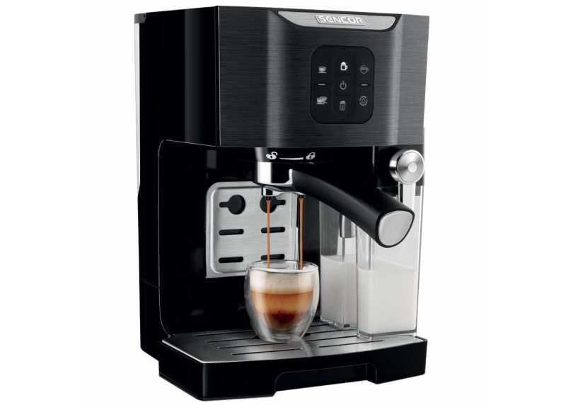 Pákový kávovar Sencor SES 4040BK s pěničkou na mléko. Vyhřívaná deska pro ohřev šálků.