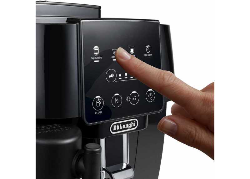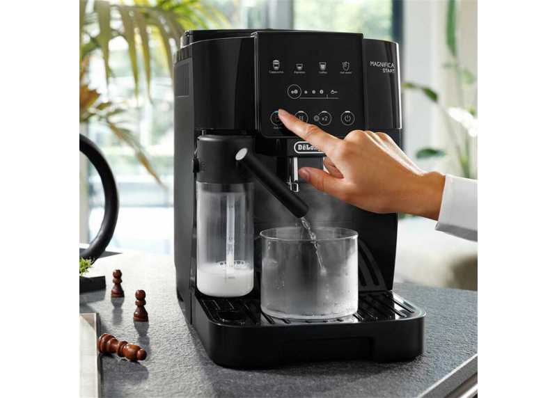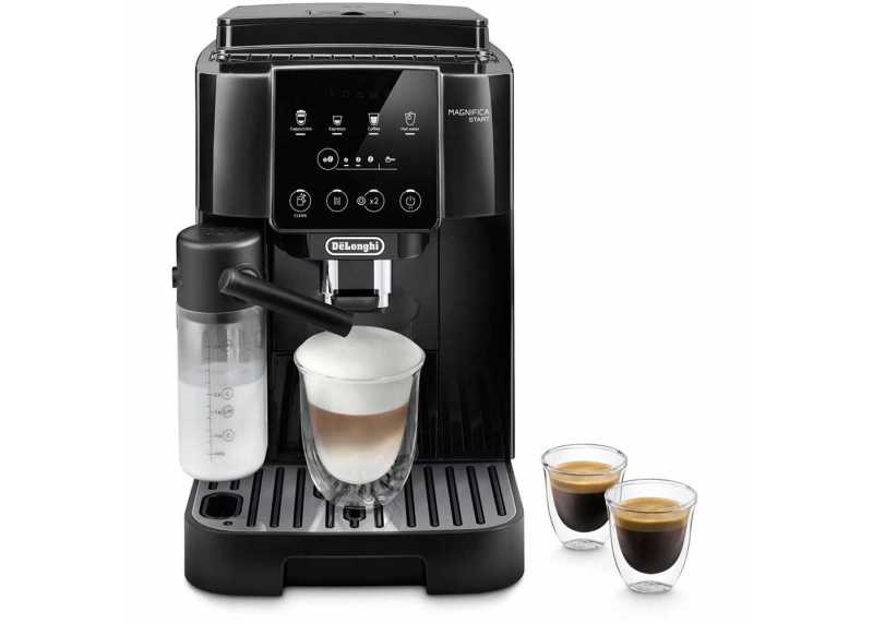 Hledáte kávovar, který snadno a rychle připraví lahodnou kávu? Představujeme automatický kávova DeLonghi Magnifica Start ECAM 220.60.B, je navržený pro všechny, kteří chtějí skvělou kávu stiskem jediného tlačítka. Díky integrovanému mlýnku s 13 stupni mletí si užijete vždy čerstvou a aromatickou kávu přesně podle vaší chuti. Intuitivní ovládací panel umožňuje snadno nastavit intenzitu, teplotu i velikost nápoje, takže si doma připravíte espresso, lungo, nebo rovnou 2 kávy zároveň. Kávovar disponuje systémem Cappuccino pro rychlou přípravu mléčné pěny a jeho kompaktní konstrukce se hodí do každé kuchyně. Samočisticí funkce a vyjímatelná spařovací jednotka zajišťují jednoduchou údržbu, takže si můžete vychutnat perfektní kávu každý den bez starostí.
