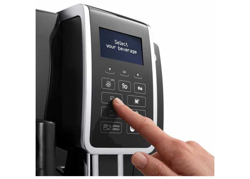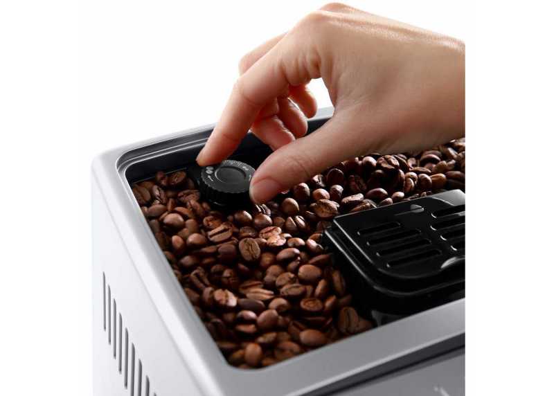 Automatický kávovar De’Longhi Dinamica ECAM 350.55.B s tlakem 15 bar, příkonem 1450 W a nádržkou 1,8 l připraví až 11 nápojů jedním dotykem. Integrovaný kovový mlýnek s 13 stupni, mléčný systém, dotykový displej a automatické čištění zajišťují perfektní kávu bez námahy.