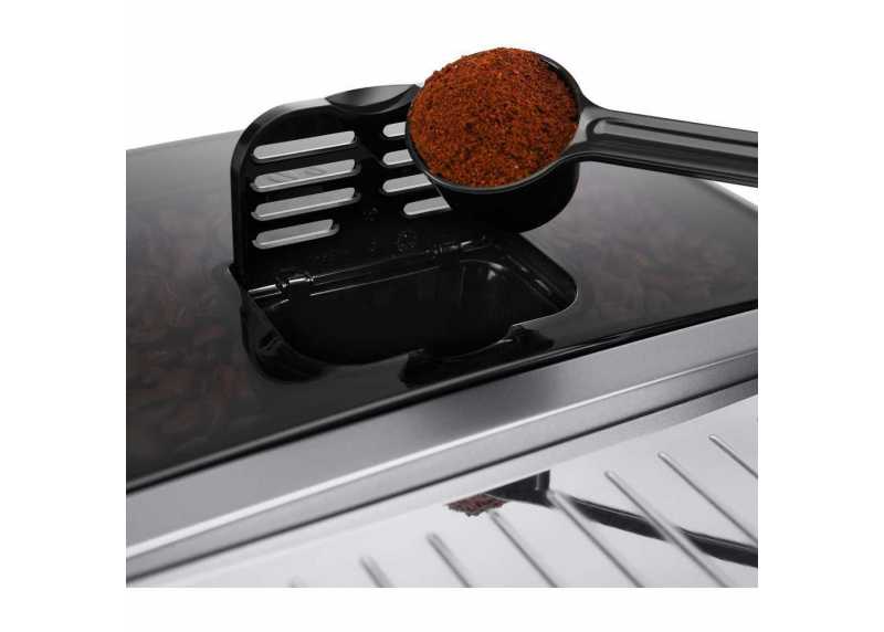 De’Longhi Dinamica ECAM 350.55.B je moderní automatický kávovar určený pro domácí použití, který připraví espresso, cappuccino, latte i další nápoje jedním dotykem. Nabízí tlak 15 bar, integrovaný mlýnek s 13 stupni mletí a mléčný systém s automatickým čištěním. Díky dotykovému displeji a možnosti přizpůsobení intenzity, teploty i množství si vychutnáte kávu přesně podle svých představ každý den. Kávovar De’Longhi Dinamica ECAM 350.55.B kombinuje profesionální technologie a jednoduché ovládání pro maximální komfort při přípravě kávy. Kapacita zásobníku na zrna 300 g, nádržka na vodu 1,8 l a mléčný systém s nádobou o objemu 1 l umožňují pohodlné každodenní používání. Automatické čištění, vyjímatelná spařovací jednotka a intuitivní displej usnadňují údržbu i obsluhu. Ideální řešení pro milovníky kávy doma i pro každodenní rodinné použití.