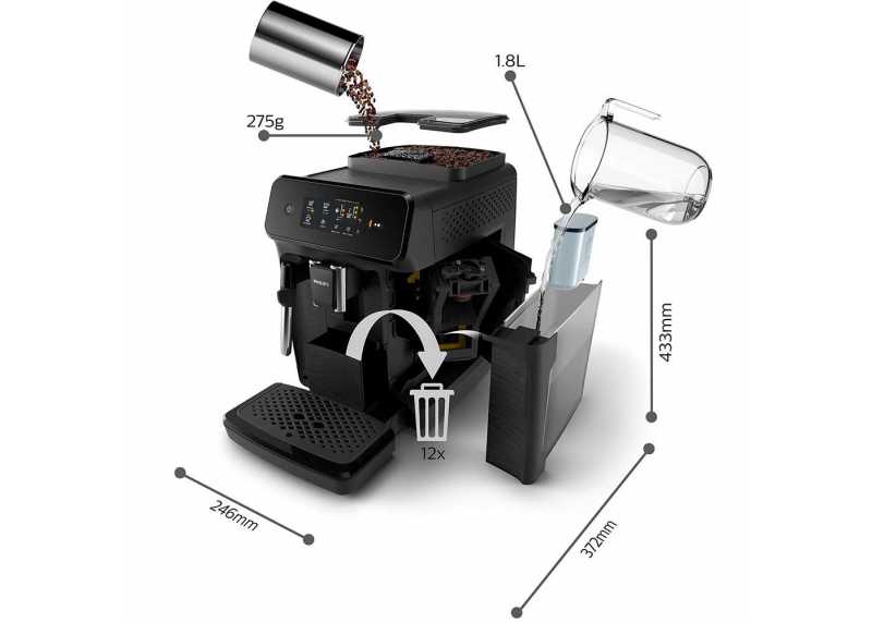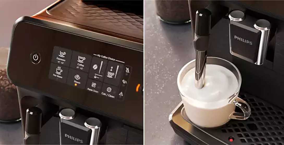 Automatický kávovar Philips Series 1200 EP1220/00 v černém provedení přináší plnou chuť čerstvě namleté kávy stiskem jediného tlačítka. Keramický mlýnek s 12 stupni hrubosti zachovává aroma zrn a zajišťuje dlouhou životnost. Díky tlaku 15 barů připraví espresso s bohatou cremou i klasickou kávu přesně podle vaší chuti. Intuitivní dotykový panel umožňuje snadné nastavení intenzity i objemu nápoje. Manuální parní tryska napění mléko pro cappuccino či latte macchiato podle vašich preferencí. Systém AquaClean omezuje nutnost odvápňování až na 5 000 šálků (při pravidelné výměně filtru), což výrazně usnadňuje údržbu. Vyjímatelná spařovací jednotka umožňuje rychlé opláchnutí pod tekoucí vodou, takže si kávovar udržíte v perfektní kondici bez složitého čištění. Philips Series 1200 je ideální volbou pro domácnosti i menší kanceláře, které chtějí spolehlivý výkon, jednoduché ovládání a konzistentní kvalitu každého šálku.