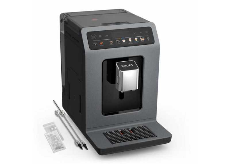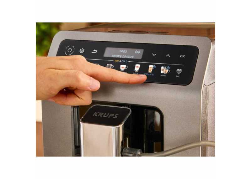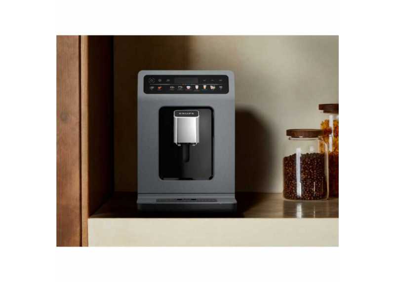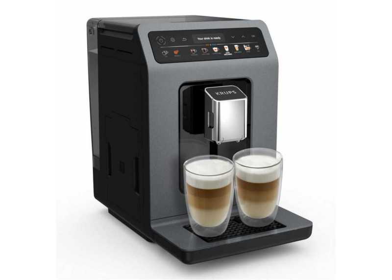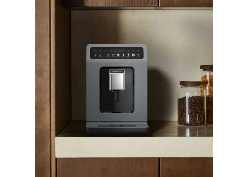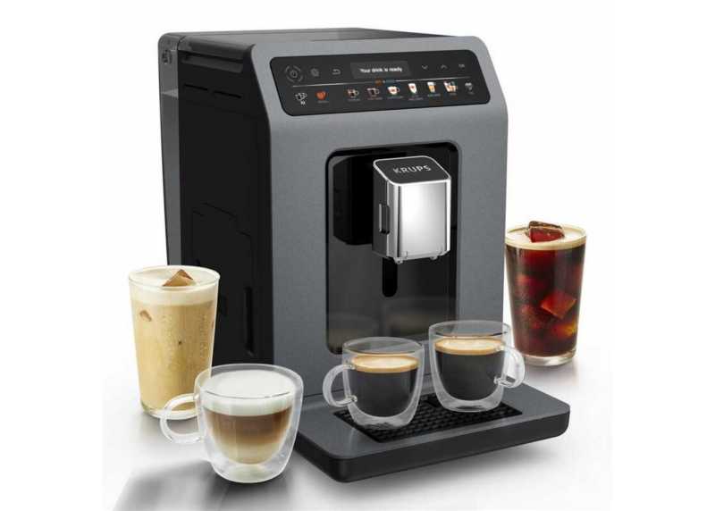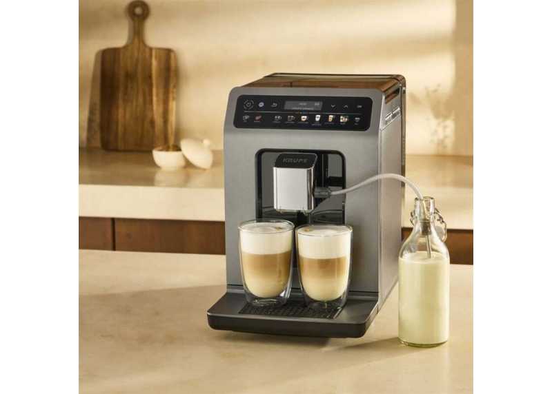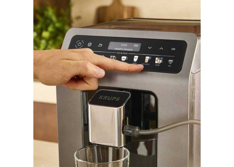 Automatický kávovar Krups EA898GF0 Evidence Hot & Cold – 15 bar, 1450 W, 18 nápojů včetně studených, One-Touch Cappuccino, mlýnek, 2,3 l nádržka, příprava 2 šálků, intuitivní displej.