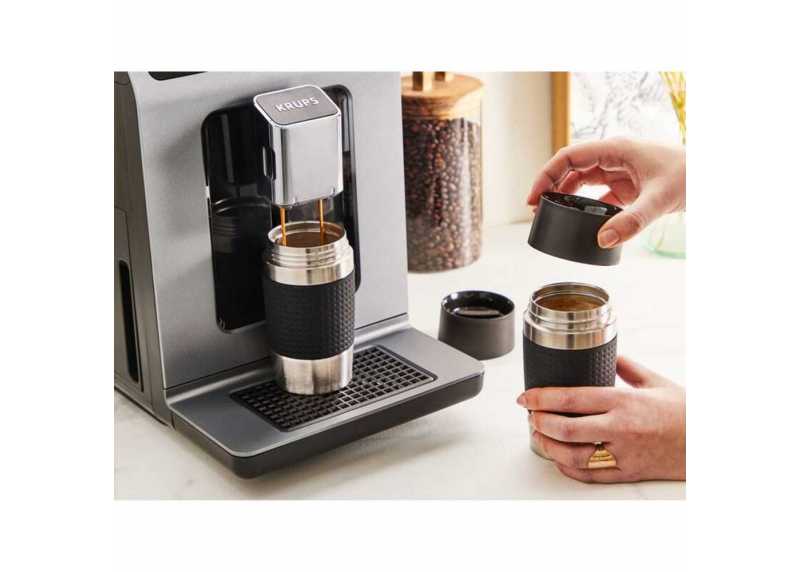 Výškově nastavitelná výpusť umožňuje použití různých typů hrnků včetně termohrnků. Díky tomu si snadno připravíte kávu i s sebou bez zbytečného přelévání. Hermeticky uzavřený zásobník na kávová zrna o kapacitě 250 g udržuje aroma déle čerstvé. Integrovaný kónický mlýnek zajišťuje rovnoměrné mletí pro maximální chuť.