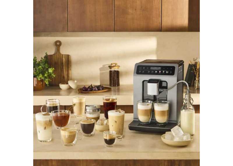 Kávovar v elegantním šedém provedení zapadne do každé kuchyně a nezabere mnoho místa. Díky kompaktním rozměrům je vhodný i do menších prostor. Tichý provoz zajišťuje nerušené používání i v ranních hodinách. Konstrukce z kvalitních materiálů garantuje dlouhou životnost a spolehlivost.
