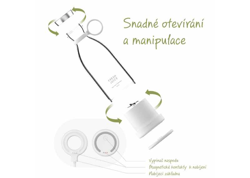 Milujete smoothie a koktejly všeho druhu? Mixněte si je kdekoliv s naším bezdrátovým smoothie makerem ve tvaru praktické lahve. Nejen, že vám tak smoothie umixuje, ale rovnou jej z mixéru můžete i upíjet. Šroubovací uzávěr zajistí, že nevyteče ani kapka. Kompaktní rozměry umožňují snadné přenášení. Vejde se do batůžku i do kabelky. S integrovanou baterií si umixujete až 20 dávek do dalšího nabití.
