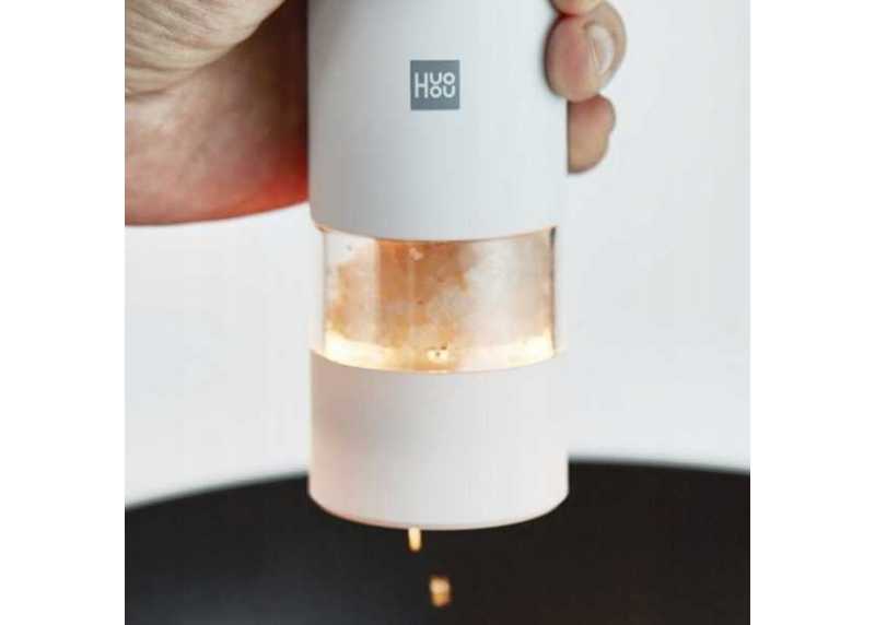 Elektrický mlýnek na koření je složen z keramické mlecí části a plastového těla ABS v matném provedení. Průhledný průzor usnadňuje kontrolu nad docházejícím kořením. Mlýnek mele v pěti stupních hrubosti bylinky, koření, sůl a pepř. Záleží na vás, co do něj nasypete. Je odolný a při mletí tichý, vyluzuje pouze 68 dB. Snadno se čistí a nepodléhá korozi. Při mletí svítí.