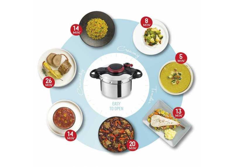 Nerezový tlakový hrnec je o 30 % lehčí než běžné tlakové modely. Snadno ho otevřete i zavřete jej jednou rukou a díky přesné kontrole tlaku připravíte maso, ryby, zeleninu, dezerty nebo zavařeniny až dvakrát rychleji. Sendvičově konstruované dno zaručuje rovnoměrný ohřev na indukci, plynu, sklokeramice i elektrice. V přiloženém parním koši připravíte pokrmy vařené v páře. Všechny části hrnce lze mýt v myčce. Celkový objem 9 l bohatě vystačí na pokrm pro celou velkou rodinu. V balení najdete i inspirativní kuchařsku s recepty. V mobilní aplikaci Smart&Tasty pak najdete dalších 300 receptů.