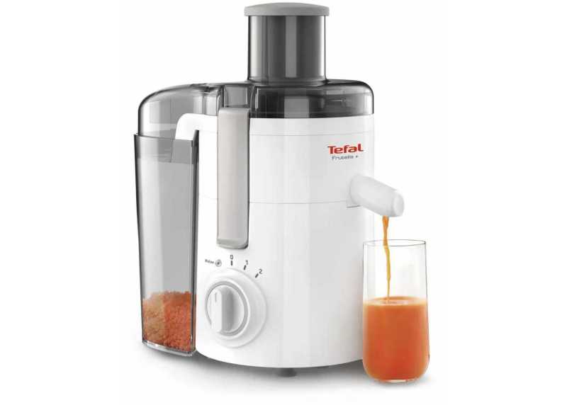Tefal Frutelia Plus ZE370138 je kompaktní a výkonný odstředivý odšťavňovač, který vám pomůže jednoduše a rychle připravit čerstvé ovocné a zeleninové šťávy. Je vybaven příkonem 350 W a nerezovým filtrem, který zaručí efektivní extrakci šťávy z různých druhů surovin – od měkkých jablek po tvrdší zeleninu. Díky dvěma rychlostním stupňům snadno přizpůsobíte výkon aktuálnímu typu suroviny. Odšťavňovač má velký plnicí otvor o průměru 60 mm, takže není nutné ovoce a zeleninu předem krájet na malé kousky. O bezpečnost se stará pojistka proti spuštění bez víka a protiskluzové nožky, které zajistí stabilitu přístroje při provozu.