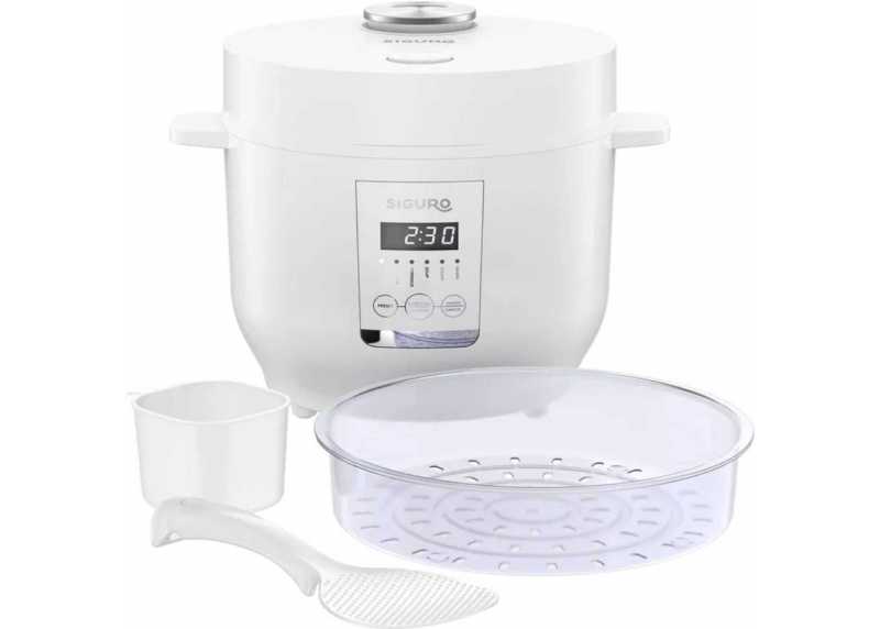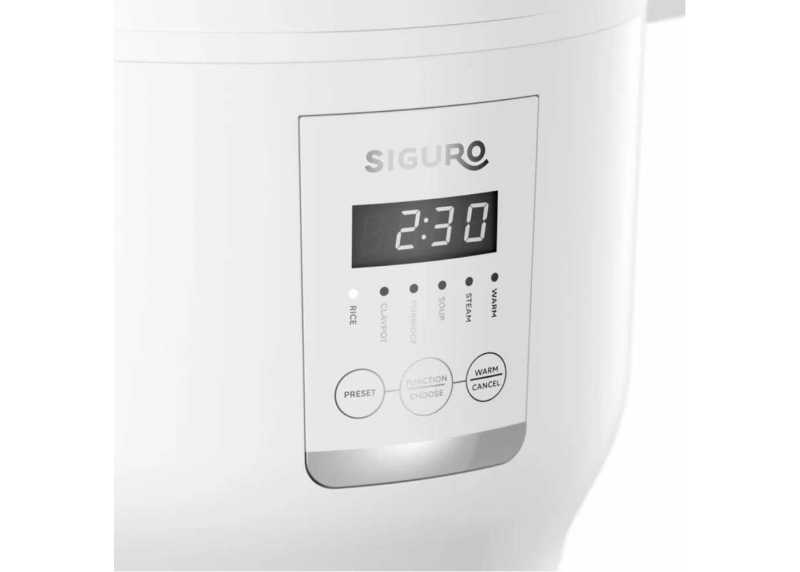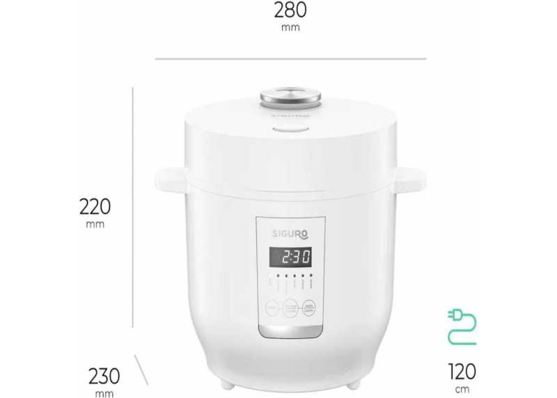 Rýžovar Siguro RC-R701W Rice Master Digital je určen pro snadnou přípravu rýže různých druhů, kaší, polévek i pokrmů vařených v páře. Díky digitálnímu ovládání, automatickým programům a vyjímatelné hliníkové nádobě umožňuje pohodlné vaření bez nutnosti míchání či hlídání.