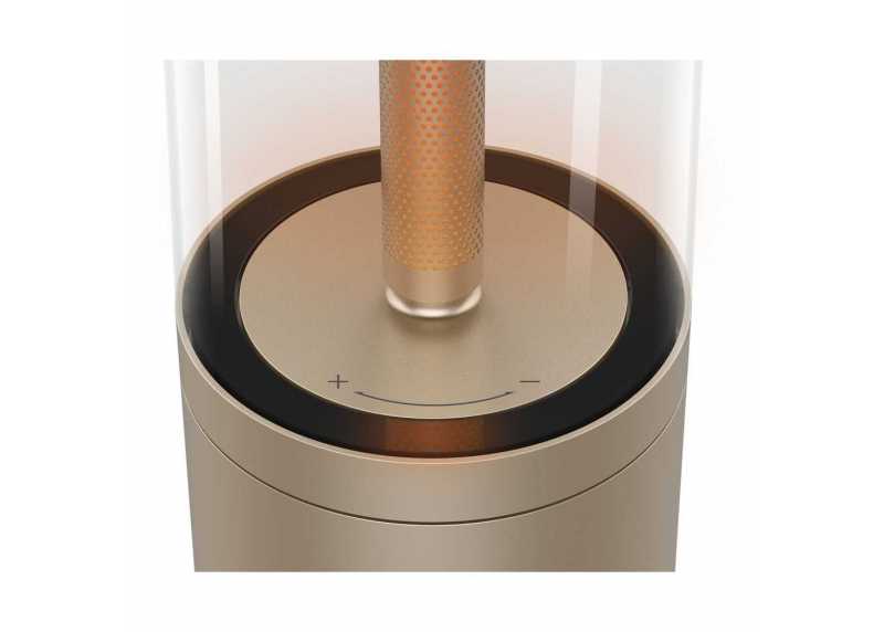Stylová LED lampička Yeelight Ambience Lamp, teplé bílé světlo 1800 K, světelný tok 13 lm, dotykové stmívání, výdrž baterie až 9,5 h, výkon 5 W, integrovaná LED, luxusní kovové tělo, vhodná pro interiér i exteriér, ideální na noční stolek nebo dekorativní osvětlení.