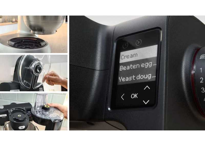 Model BOSCH MUMS6ZS17 je vybaven integrovanou váhou, která umožňuje přesné vážení surovin přímo v míse na gram. Tato funkce podporuje také měření objemů v mililitrech, uncích a librách, což usnadňuje přesné dávkování ingrediencí. Navíc je robot vybaven praktickým časovačem, který umožňuje nastavit přesný čas míchání, hnětení či mixování. Po uplynutí nastaveného času se robot automaticky zastaví.