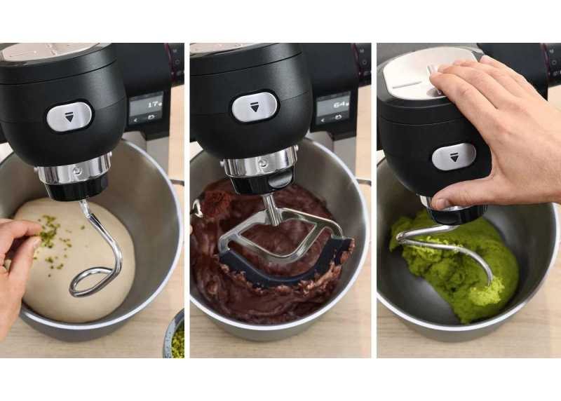 Pro perfektní promíchání surovin využívá kuchyňský robot inovativní 3D planetární míchání, které zajišťuje rovnoměrný pohyb směsi do tří směrů, zatímco pohon se otáčí opačným směrem. Tento mechanismus zaručuje, že všechny ingredience jsou důkladně promíchány, a to i na bocích, ze dna či středu mísy, což vede k nadýchanému těstu a dokonalému výsledku. Robot je vybaven objemnou 5,5litrovou nerezovou mísí, která umožňuje přípravu velkých množství těsta, ideální pro domácí pečení nebo přípravu dezertů pro větší rodinné oslavy.