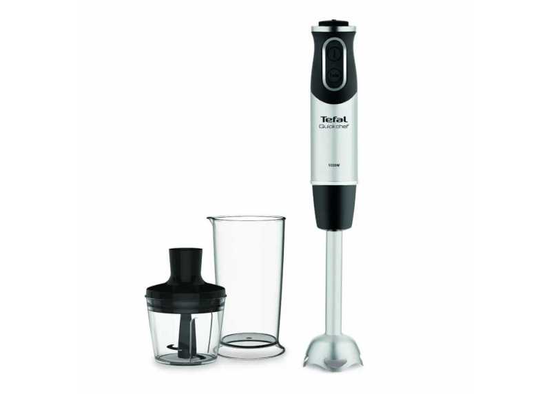 Tyčový mixér Tefal QUICKCHEF 2v1 s výkonem 1000 W, 20 rychlostmi a funkcí Turbo. Nerezové tělo, technologie Powelix, 800ml nádoba a 500ml minisekáček pro snadnou přípravu pokrmů.