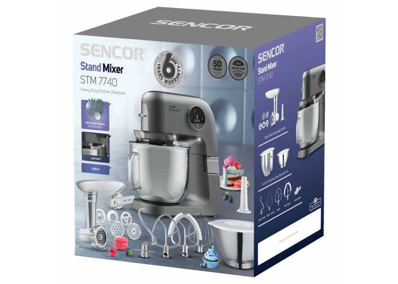 Pokud hledáte kuchyňského pomocníka, který se nezalekne žádné výzvy, Sencor multifunkční robot Sencor STM 7740 PAUL 2l je ideální volba. Díky silnému 1 500W motoru a celokovovému provedení si s přehledem poradí s mícháním, hnětením, šleháním a mletím masa. Navíc máte k dispozici dvě nerezové nádoby o objemech 6 l a 3,5 l, takže si vystačíte s menší či větší mísou přesně podle aktuální potřeby. Ovládání zvládne každý díky inteligentnímu dotykovému LED displeji s indikací času chodu. Díky praktickým nástavcům vám robot usnadní prakticky všechny kuchyňské činnosti a ušetří spoustu času. Uhnětení těsta na pizzu nebo čerstvý chléb? Kovový hák to zvládne rychle a bez námahy. A pokud budete chtít vykouzlit domácí klobásky, s nástavcem na plnění střívek a masomlýnkem na hrubé i jemné mletí to půjde snadno a rychle. S flexi metlou s kovovou stěrkou zas docílíte hladkých krémů bez hrudek a s tvořítkem vykouzlíte i domácí cukroví během chvilky. Kuchyňský robot Sencor je zkrátka pomocník do každé kuchyně.