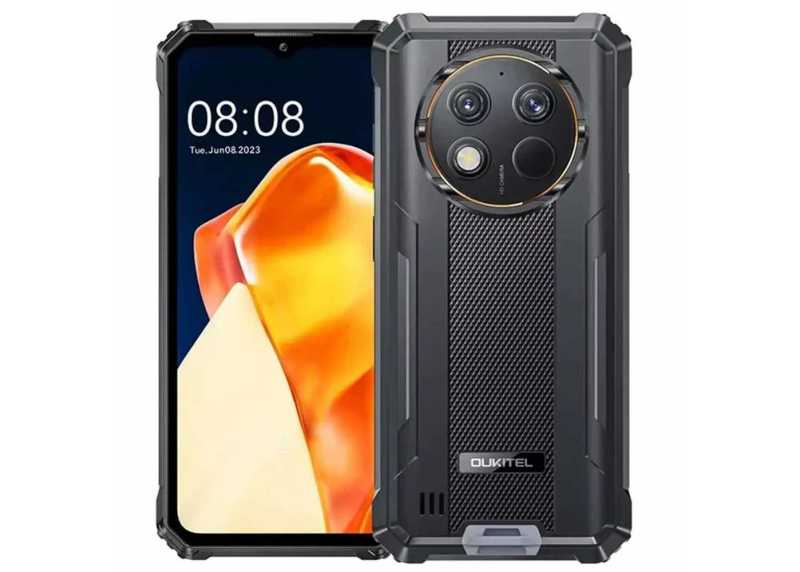 Outdoorový smartphone - 6,52" LCD displej 1280x576, Unisoc Tiger T606, zadní fotoaparát 13 + 2 MPx, přední kamera 5 MPx, 4+12 GB RAM, interní paměť 128 GB, baterie 10 600 mAh, Dual SIM s hybridním slotem, 4G/LTE, GPS, GLONASS, Galileo, Beidou, NFC, čtečka otisků prstů, rychlé nabíjení, voděodolný, Android 14