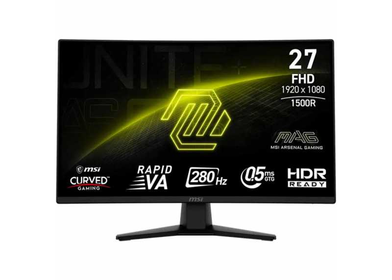 Herní LCD monitor od MSI se stojánkem a úhlopříčkou 27", rozlišením 1920 x 1080, jasem 300 cd/m2, kontrastem 4000:1, dobou odezvy 0,5 ms, obnovovací frekvencí 280 Hz, poměr stran činí 16:9, Disponuje konektory HDMI a DisplayPort, výstup na sluchátka, VESA uchycení.