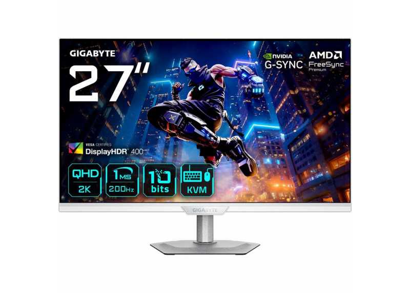 27" herní monitor GIGABYTE M27Q2 QD ICE s rozlišením 2560 × 1440, IPS panelem, 200 Hz a odezvou 1 ms. 10bit barvy, 130 % sRGB, 99 % Adobe RGB, HDR, FreeSync Premium, G-Sync kompatibilní, HDMI 2.0, DisplayPort 1.4, USB-C a KVM.