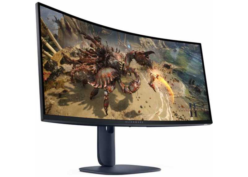 34" prohnutý herní monitor Dell Alienware AW3425DWM s VA panelem, rozlišením 3440 × 1440, obnovovací frekvencí 180 Hz a odezvou 1 ms. DisplayHDR 400, FreeSync Premium, HDMI 2.1, DisplayPort, USB, VESA, výškové nastavení. Kontrast 3000:1, jas 400 cd/m².
