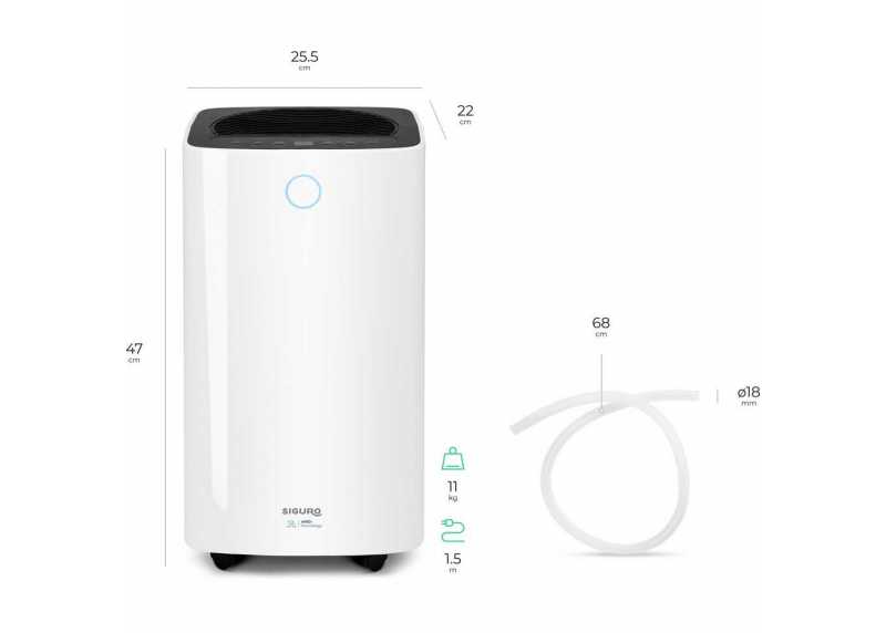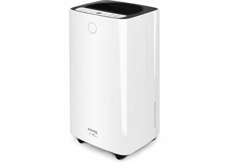 Odvlhčovač Siguro DH-C30 Otter s výkonem 12 l/den pro místnosti do 40 m². Tichý provoz 36 dB, uhlíkový filtr, nádoba 2 l, displej, časovač, automatické odvlhčování, indikace plné nádržky a možnost nepřetržitého odvodu kondenzátu.