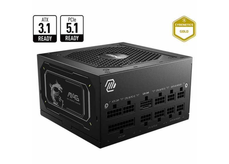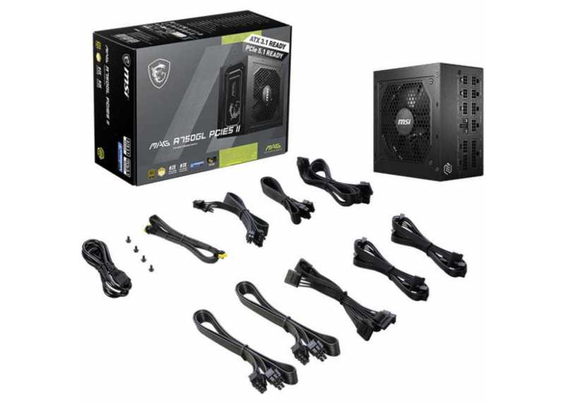 Plně modulární zdroj MSI MAG A750GL PCIE5 II s výkonem 750 W, standardem ATX 3.1 a certifikací 80 PLUS Gold. Nabízí účinnost až 90 %, PCIe 5.1 (12V-2x6), tichý 120mm ventilátor, pokročilé ochrany a kompletní konektorovou výbavu pro stabilní provoz výkonných PC.