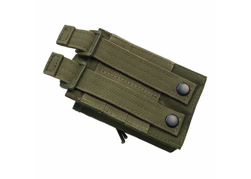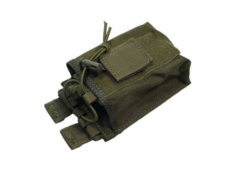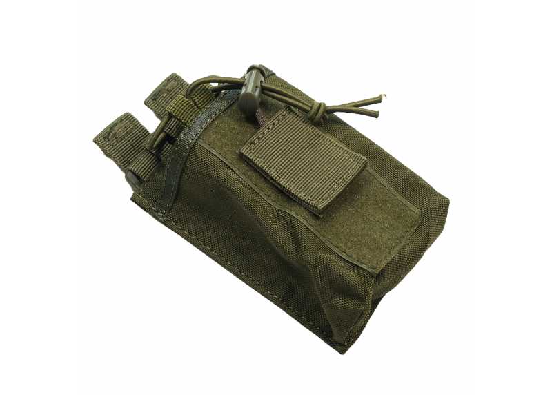 Pouzdro na vysílačku o rozměrech cca 135 x 90 x 40 mm. Kompatibilní s Molle systémem/vazbou.