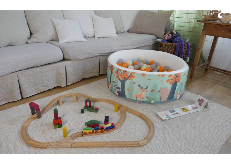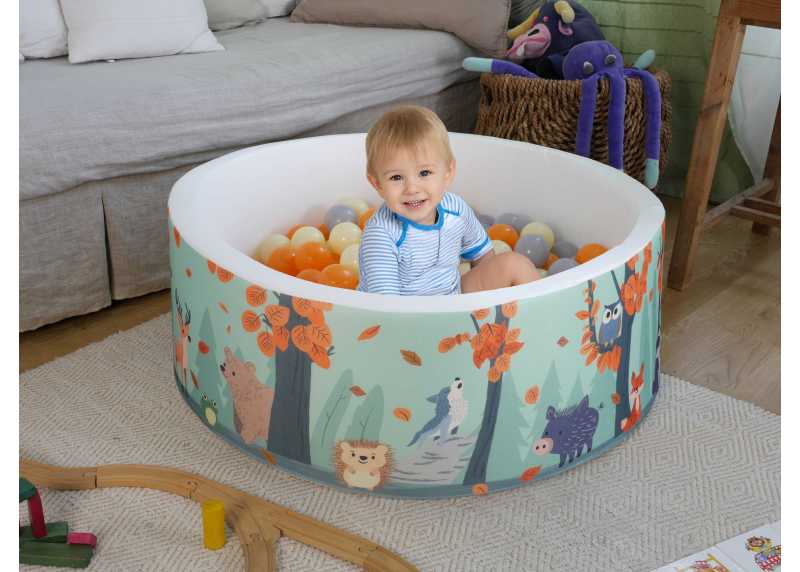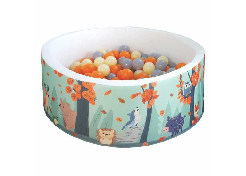 Co mít doma kousek lesa? A s ním i spoustu jeho obyvatel? Suchý bazének s motivem lesního dobrodružství vám umožní s dětmi hledat lesní zvířátka a pojmenovávat si je. Strávíte tak při hraní mnohem více zábavy. Motiv bazénku není o repetitivním vzoru, ale o pečlivě navrženém uspořádání, při kterém vyhledáváte jednotlivá zvířátka a jejich druhy. Bazének je vhodný pro děti od 1 roku. Spolu s nimi se můžete přenést pod klenbu stromů a spřátelit se s lesními obyvateli.