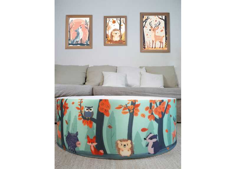 Kolem dokola bazénku naleznete ilustraci lesa s jeho obyvateli. Celkem v lese najdete 10 zvířátek a jejich druhů. Můžete se tak s dětmi věnovat jejich vyhledávání - ukážete na jednoho zajíce a dítě může hledat druhého - nebo se s dětmi můžete učit charakteristické zvuky, které některá zvířátka vydávají. O zvířátkách si můžete i vyprávět, zatímco si je na stěně bazénku budete ukazovat. Zábavu tak dítě najde nejen uvnitř, ale i venku.