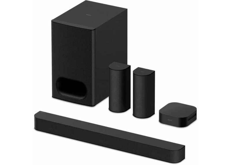 Soundbar Sony Bravia Theatre System 6 s výkonem 1 000 W a 5.1kanálovým zvukem Dolby Atmos a DTS:X. Nabízí subwoofer, zadní reproduktory, HDMI eARC a Bluetooth připojení.