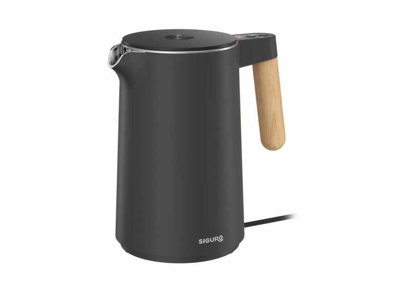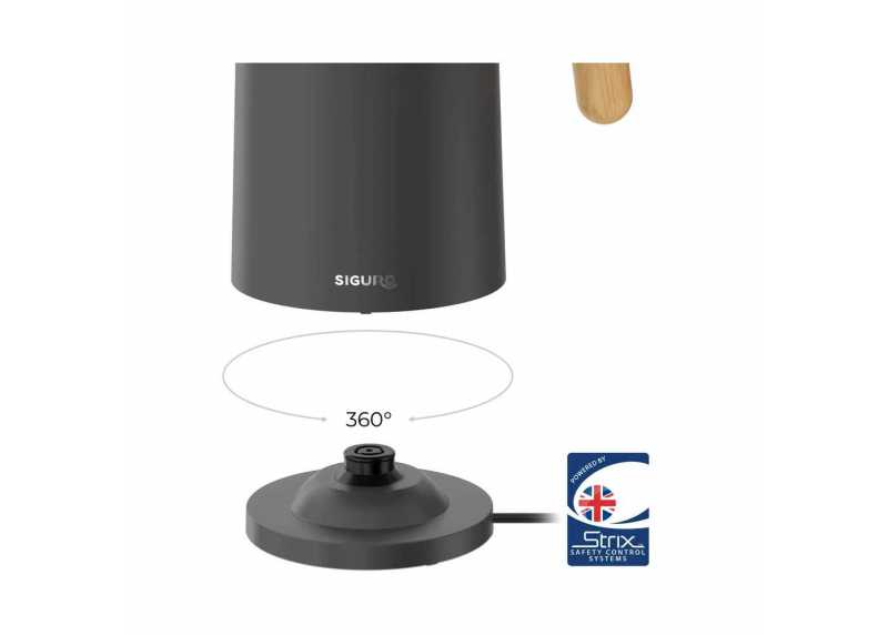 Siguro Mackay C750LY je rychlovarná konvice o objemu 1,5 l s možností zvolit cílovou teplotu vody. Nabízí 7 přednastavených úrovní v rozsahu 45–100 °C (45, 60, 70, 85, 90, 95 a 100 °C), dvouplášťové provedení Cool Touch a britský Strix konektor testovaný na více než 12 000 použití. Manipulaci usnadňuje 360° otočná základna s úložným prostorem pro kabel.