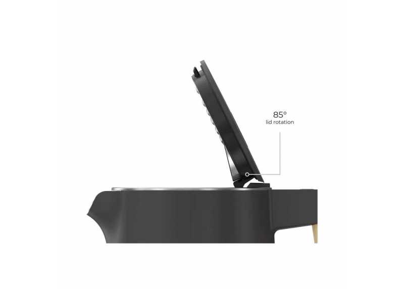 Dvouplášť z nerezové oceli 304 pomáhá udržet povrch chladnější (Cool Touch) a materiál nepohlcuje pachy ani chutě. Skrytá topná spirála je umístěna pod dnem pro snazší údržbu. Antidrip víko odvádí zkondenzovanou vodu zpět do konvice a lze jej otevřít až do úhlu 85°.
