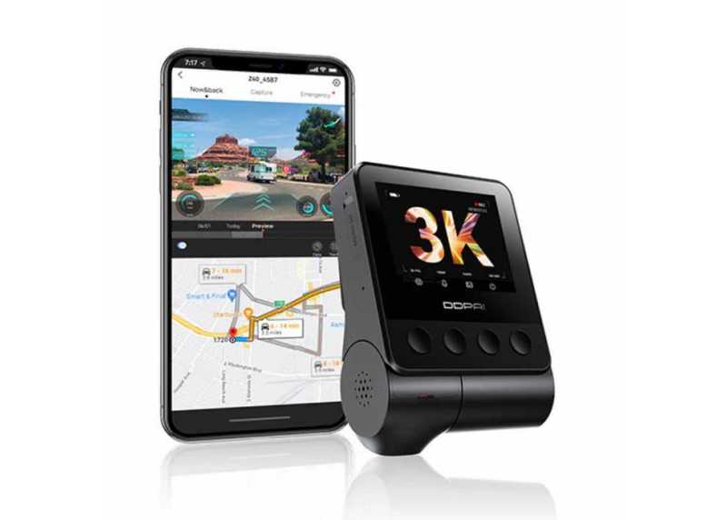 Sada přední a zadní kamery do auta DDPAI Z40 GPS Dashcam. Přední kamera s displejem. Pozorovací úhel 140° a 125°. Rozlišení 1944 px a 1080 px. Integrovaný GPS modul.