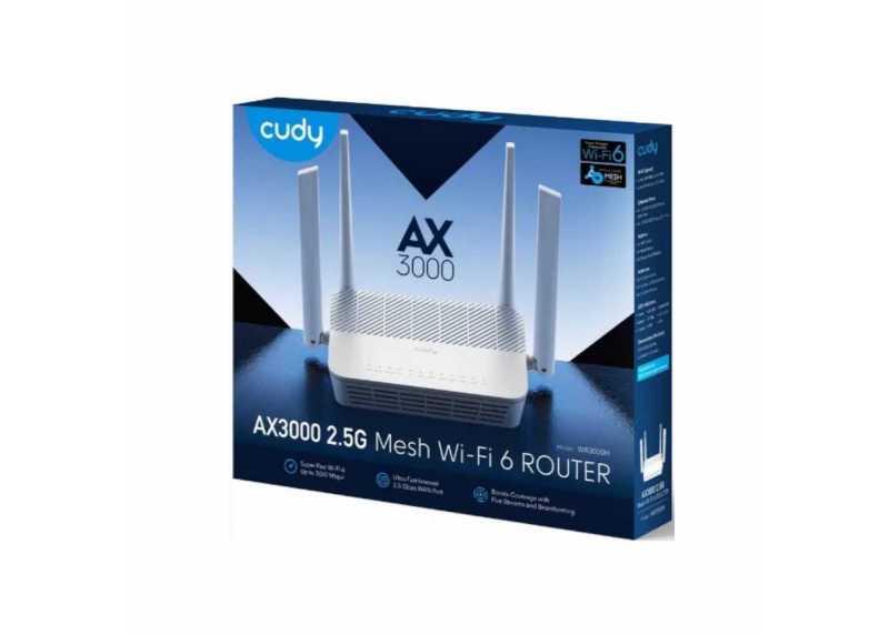 WiFi router Cudy AX3000 nabízí moderní standard Wi-Fi 6, dvoupásmové připojení s rychlostí až 2976 Mb/s, podporu VPN a pokročilé zabezpečení WPA3. Díky čtyřem externím anténám, 2.5G WAN portu a stabilnímu výkonu je ideální pro rychlou a spolehlivou domácí síť.