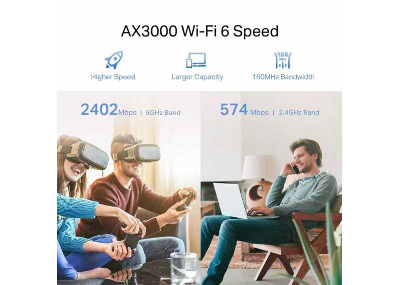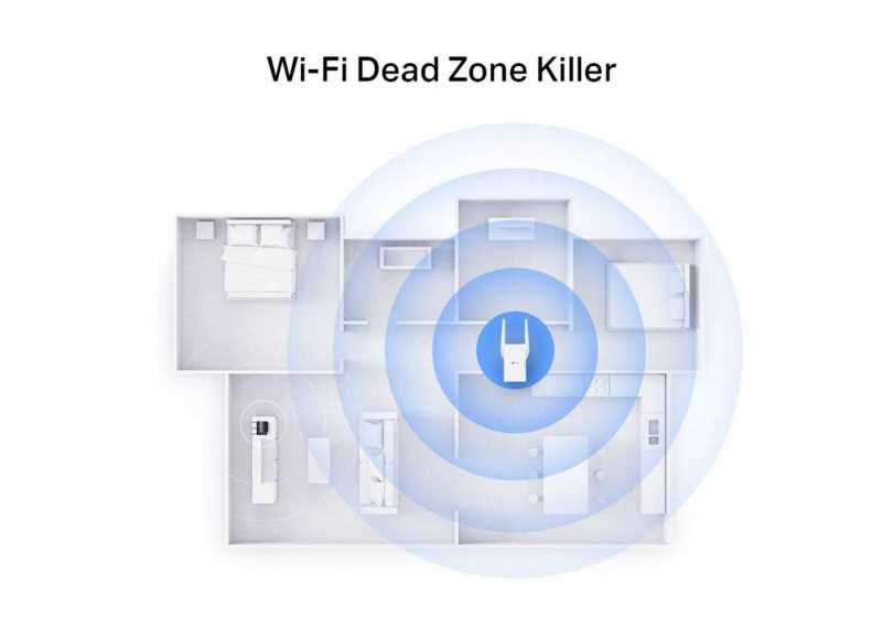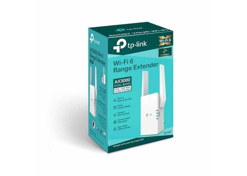 WiFi extender TP-Link RE705X WiFi6 s interní anténou, ovládání přes aplikaci Tether, Wifi 6, standardní 802.11 s/b/g/n/ac/ax, maximální rychlost přenosu Wifi 2976 Mb/s, frekvence od 2,4 do 5 GHz.