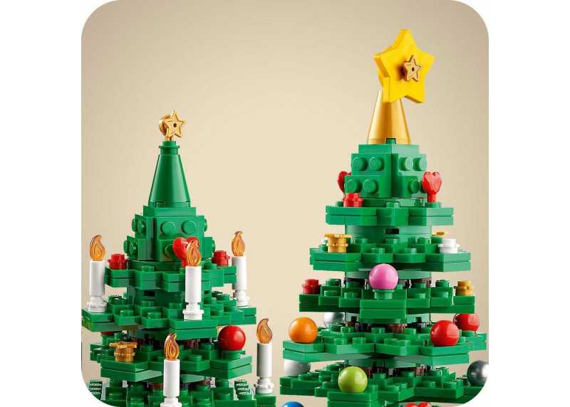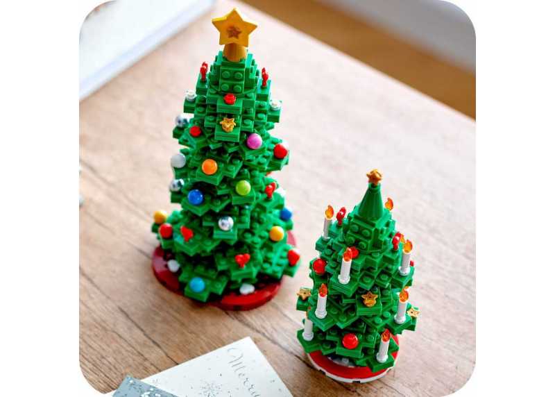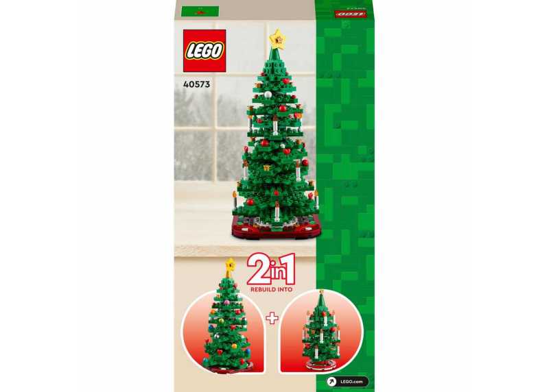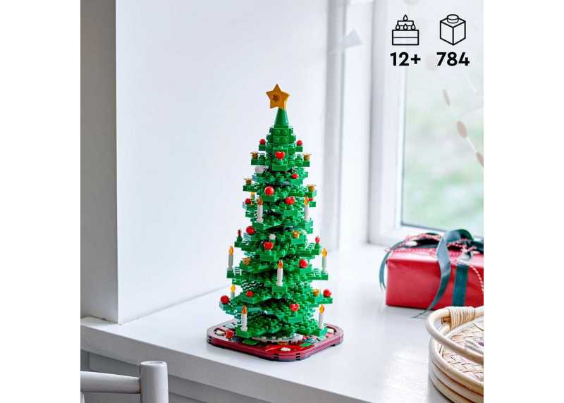 LEGO® Iconic 40573 Vánoční stromeček – 784 dílků, pro děti 11+, výška stavebnice 30 cm, šířka 19,1 cm. Řada LEGO® Iconic, volně stojící dekorace ze zelených, červených a žlutých plastových dílků. Bez potřeby baterií.
